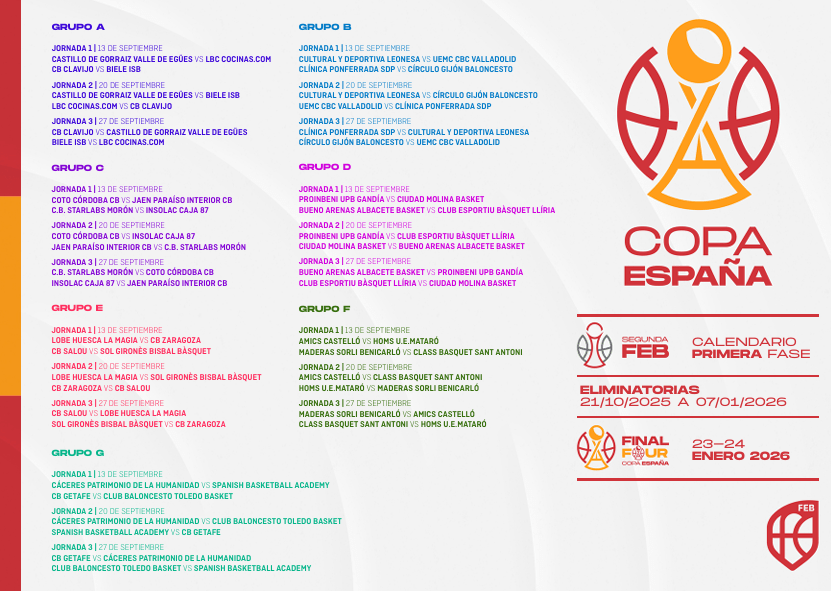 El UEMC CBC Valladolid ya tiene marcadas en rojo las fechas oficiales de la temporada. El conjunto vallisoletano competirá en el Grupo B de la II Copa España FEB, un torneo que servirá como pistoletazo de salida al curso 2025/26 y que enfrentará a 28 equipos de Segunda FEB en una fase de grupos que arranca el sábado 13 de septiembre.