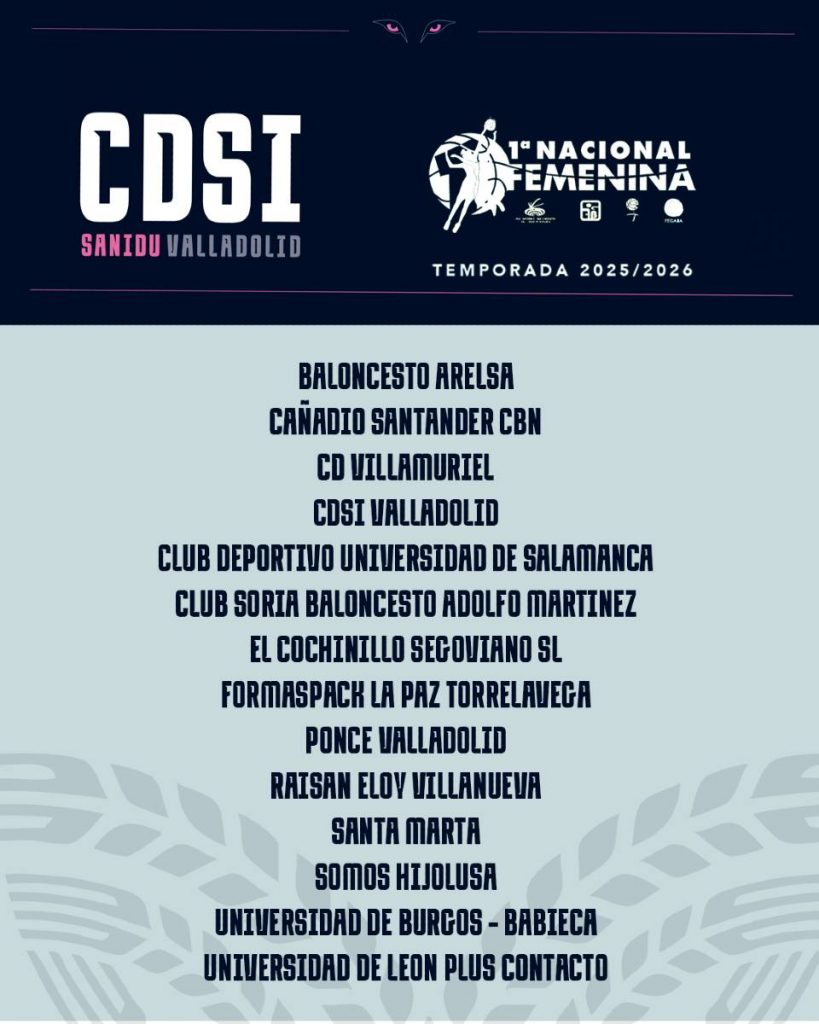 La temporada 25/26 de la Primera Nacional Femenina ya tiene forma. La Federación Cántabra de Baloncesto, encargada de organizar la competición este curso, hizo oficial la composición de los grupos y el calendario. Dos equipos vallisoletanos, CDSI Valladolid y Ponce Valladolid, representarán a la ciudad en el Grupo A1, integrado por 14 conjuntos, en su mayoría de Castilla y León.