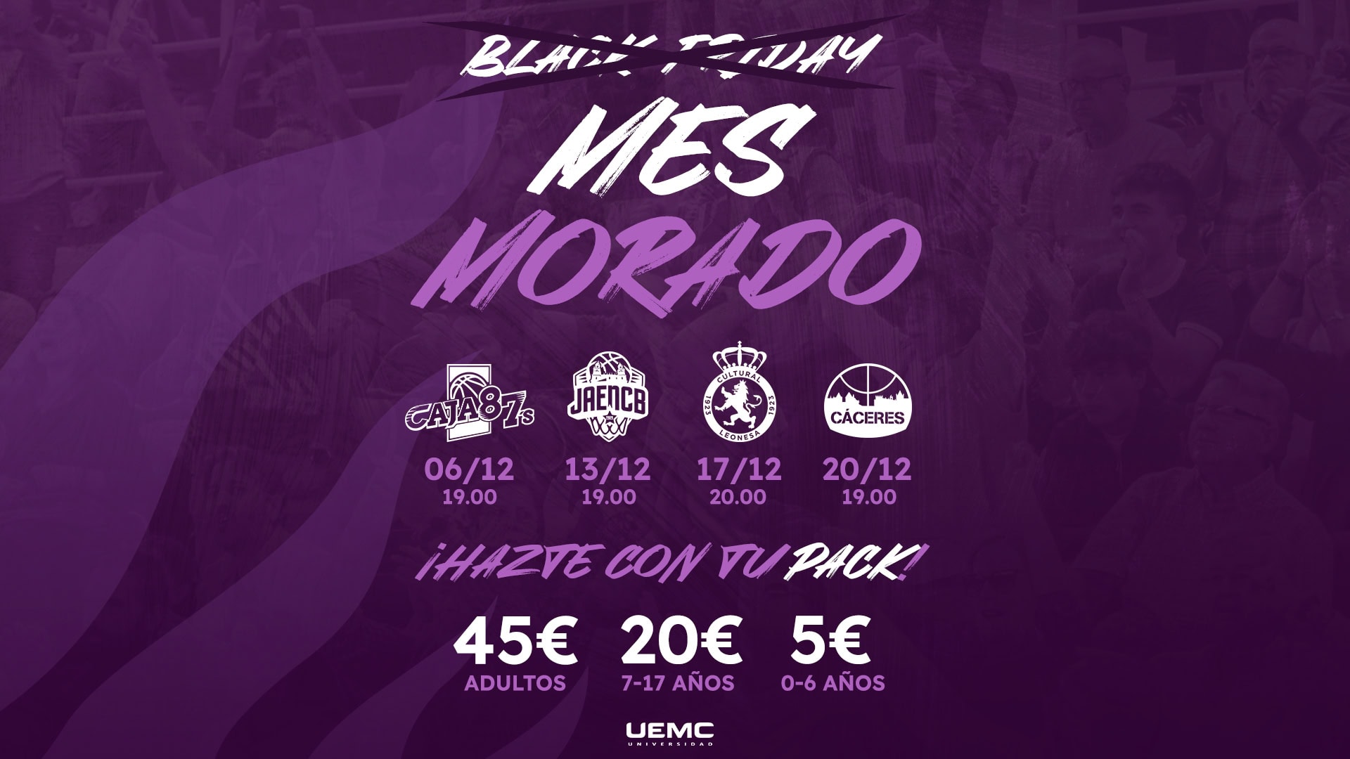 Aprovechando la coincidencia con el periodo de Black Friday, el Club ha lanzado la promoción ‘Mes Morado’, un pack que permite asistir a los cuatro compromisos en casa por un precio de 45 euros para el público general.