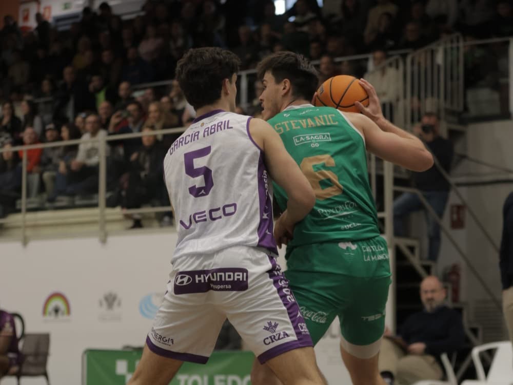 Los pucelanos no fueron capaces de tumbar a un CB Toledo que solo ha caído una vez en su pabellón esta temporada. Jorge Lafuente con 36 de valoración y 19 rebotes fue el protagonista del encuentro. Toledo comenzaba dando guerra y generando puntos a través del rebote. 9-5 para los locales en los primeros 4 minutos. Los morados encontraban algo mas de ritmo para situarse 16-15 con 7 minutos jugados. Con unos últimos 3 minutos sin mucho acierto, el primer cuarto dejaba a las ardillaa detrás por un punto: 23-22.