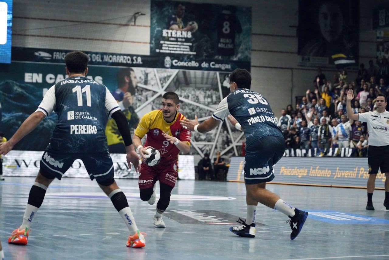 Pero Cangas no había dicho su última palabra y cerrando filas defensivas pudo volver a recuperar balones y exhibir de nuevo su peligrosidad en transición. El capitán César Pérez dio seguridad en portería a los visitantes, pero el ímpetu gallego les llevó a meter máxima presión a su rival, 24-26 min.48. Entonces llegaron los minutos de apuro, la defensa del Frigoríficos del Morrazo se le atravesó al ataque del Recoletas que se quedó más de 6 minutos sin anotar. Los locales tirando de orgullo y animados por su incansable afición empataron la cita a 27 en el minuto 55 y el choque se abocó a un final incierto.