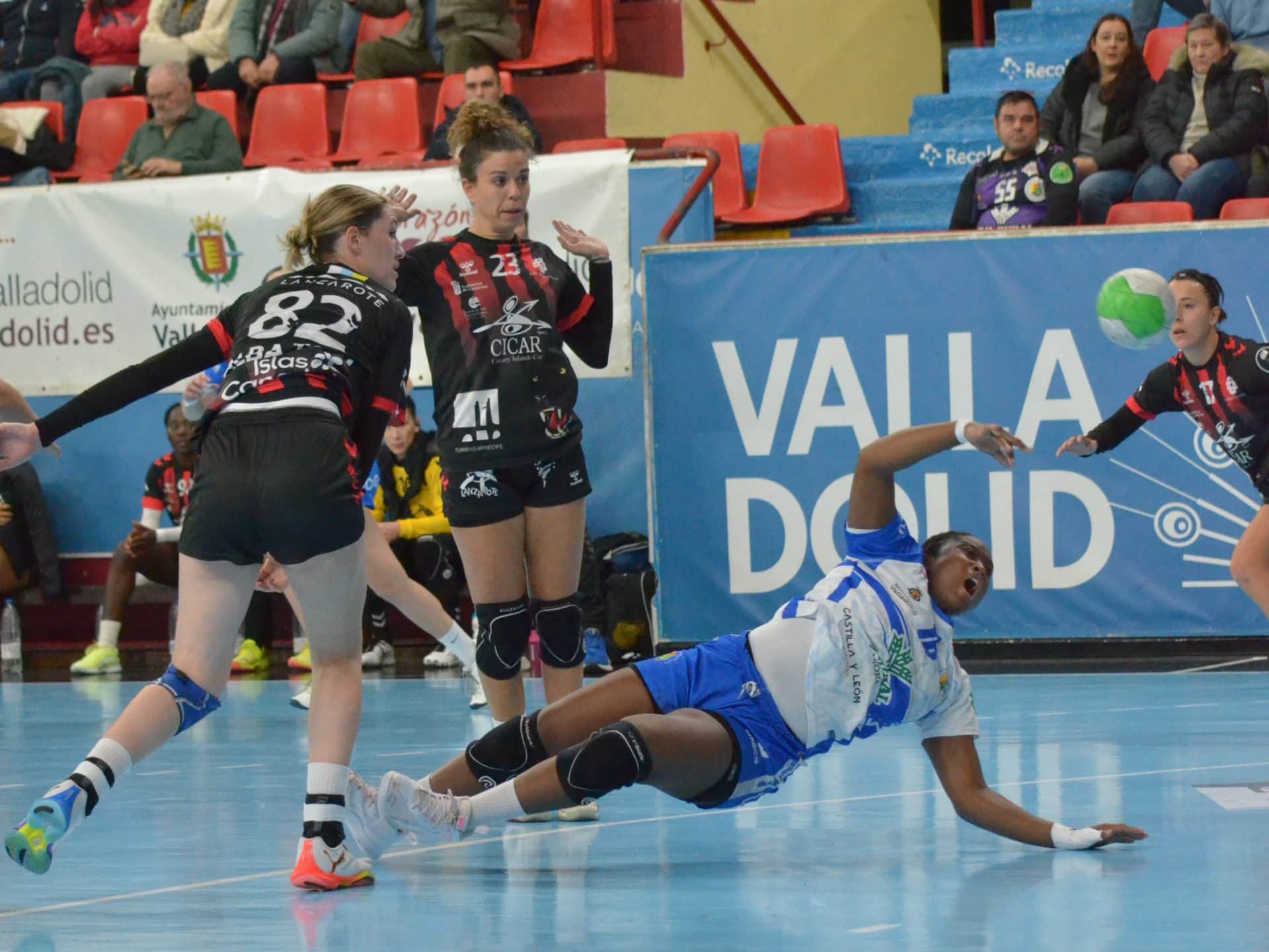 Las vallisoletanas fueron creciendo desde la defensa, con robos y carreras de sus primeras líneas, sus pivotes y sus extremos. Todas se sumaron a la fiesta de la velocidad tras pérdida de las canarias. Así, la ventaja fue creciendo hasta una máxima de siete goles que fueron cuatro al descanso después de un parcial de 0-3 en los últimos tres minutos. El partido se movía hacia el lado blanquiazul, pero no acababa de romperse.
