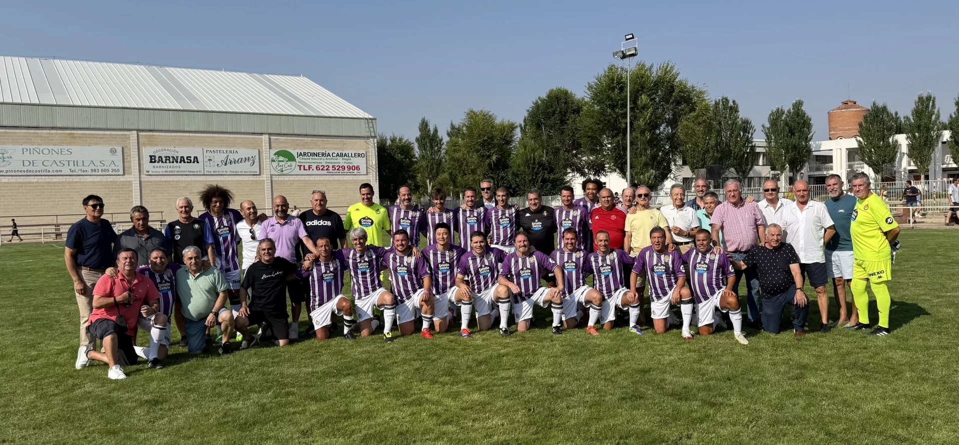 Pedrajas de San Esteban, localidad natal de José Antonio Tejedor, albergó este sábado un emotivo y sobrio homenaje exjugador del Pucela, una figura muy querida y siempre vinculada a la formación de los jóvenes valores blanquivioleta. Los veteranos de Pedrajas y los del Real Valladolid se midieron en un partido amistoso en el que lo más importante fueron los preámbulos, con la entrega de una camiseta personalizada del Club a los familiares de ‘Teje’ por parte de Eusebio Sacristán y Jorge Santiago, director corporativo, y todo el cariño del numeroso público asistente.