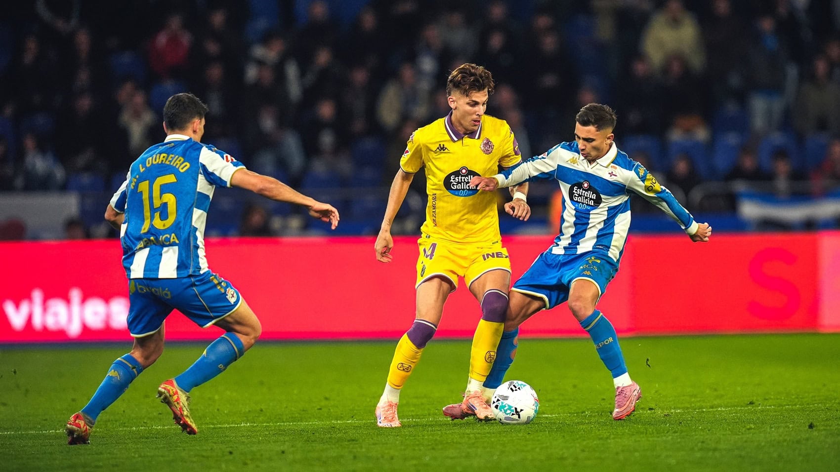 Cuantos más efectivos en ataque sumaba el Dépor desde el banquillo, más herramientas desplegaba el Pucela para contrarrestar. Una labor defensiva a la que ningún calificativo haría honor. Un sacrificio del que pone en pie a la afición. El partido se jugaba en campo vallisoletano, pero Guilherme apenas tuvo trabajo, lo que habla de la capacidad de unos jugadores (y del trabajo que se realiza entre semana) para defender el escudo y los tres puntos.