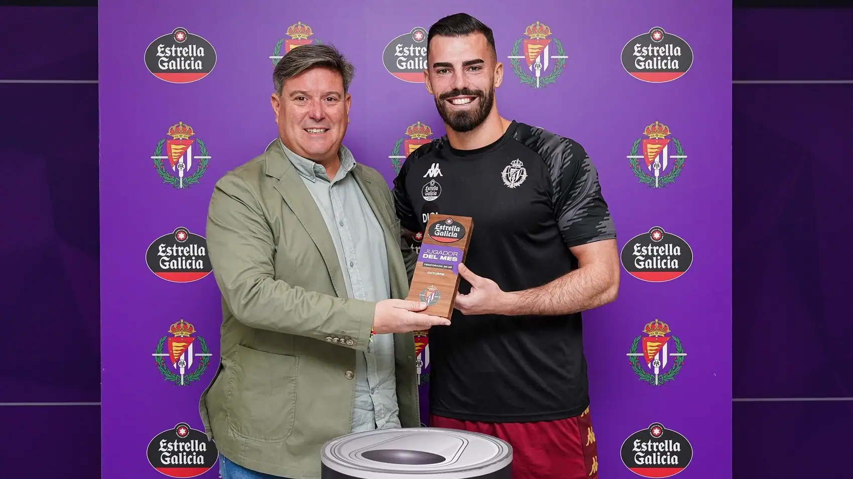 Guilherme Fernandes ha sido elegido por la afición blanquivioleta como el jugador Estrella Galicia del Real Valladolid en el mes de octubre. El portero, quien recibió el galardón de manos de Javier Valduvieco, promotor de ventas de la cervecera en Valladolid, agradeció el reconocimiento por parte de la familia blanquivioleta y habló en sala de prensa sobre la victoria del equipo el pasado lunes, su momento personal y colectivo, y el enfrentamiento de este domingo en Cádiz.