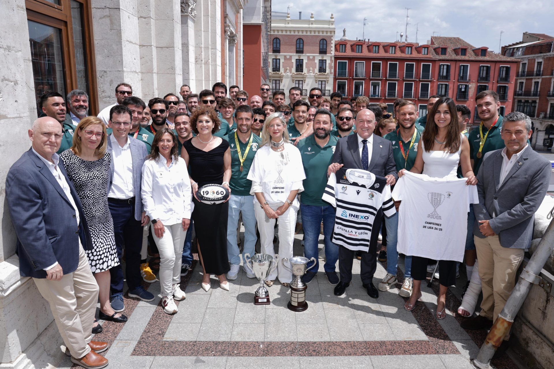 Inexo El Salvador conquistó su noveno título liguero tras imponerse a Complutense Cisneros por un ajustado 14-11. Este lunes, la plantilla y el cuerpo técnico fueron recibidos en el Ayuntamiento de Valladolid por el alcalde, Jesús Julio Carnero.