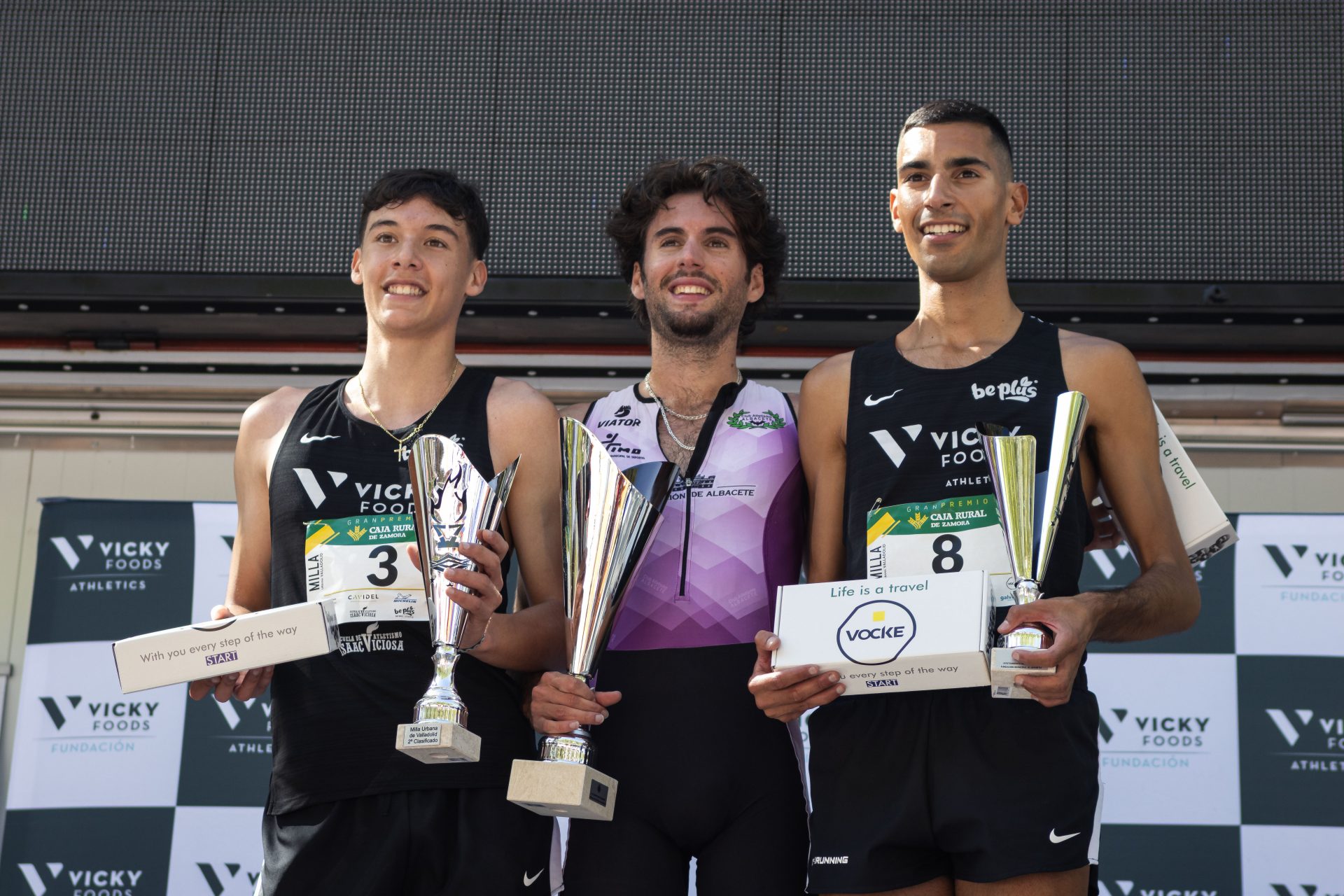 En la prueba masculina élite se vivió una carrera táctica y rapidísima, donde el atleta Carlos Sáez, recién llegado del Mundial de Tokyo, supo gestionar los ataques de sus rivales y lanzó un cambio demoledor en los últimos 200 metros para hacerse con la victoria con un tiempo de 4:23, confirmando su excelente momento de forma. El podio lo completaron Álex Sierpes (Vicky Foods Athletics), segundo con 4:24, y Daniel Alonso (Vicky Foods Athletics), tercero con 4:25. Entre los nombres destacados también brillaron los hermanos Pedro y Vicente Viciosa, que firmaron una sólida actuación ante el calor del público local.