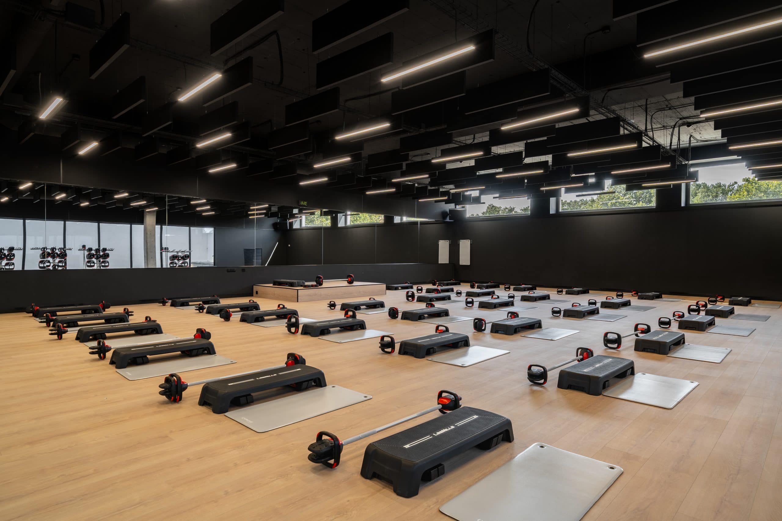 El proyecto combina espacios interiores y exteriores. El edificio alberga una sala de fitness de 1.300 metros cuadrados, con material de última generación, además de cuatro salas polivalentes donde habrá clases como yoga, pilates, ciclo o entrenamiento funcional.