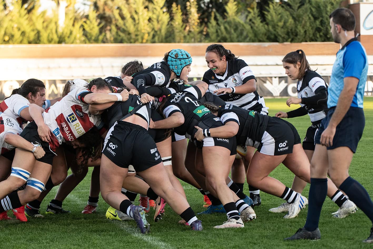 Hasta que una jugada a la mano de Kika Mulling permitiría añadir más puntos al marcador de las gallegas, después de resolver un uno contra uno ante Tecla Masoko que le permitió posar el balón bajo palos, y que se completaría con la consiguiente transformación de Chia Alfaro.