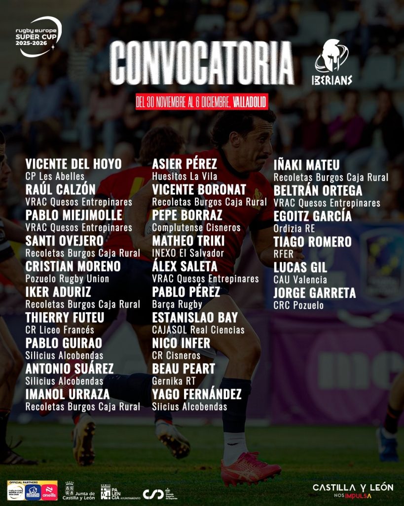 Los Castilla y León Iberians ya han hecho pública su convocatoria para la concentración del 30 de noviembre al 6 de diciembre, una lista en la que el rugby vallisoletano vuelve a tener un peso notable. Tanto el Inexo El Salvador como el VRAC Quesos Entrepinares cuentan con representación en un grupo que afronta la recta final de la Rugby Europe Super Cup.